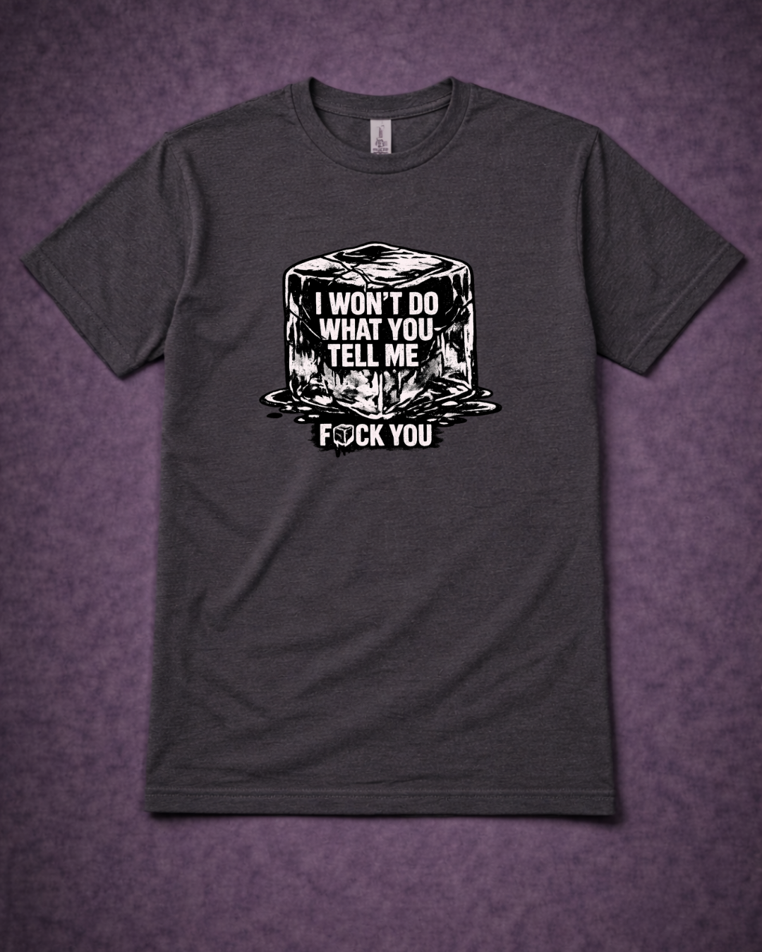 This bold statement graphic tee features a distressed melting ice cube design with the phrase “I Won’t Do What You Tell Me” — unapologetic, expressive, and impossible to ignore.