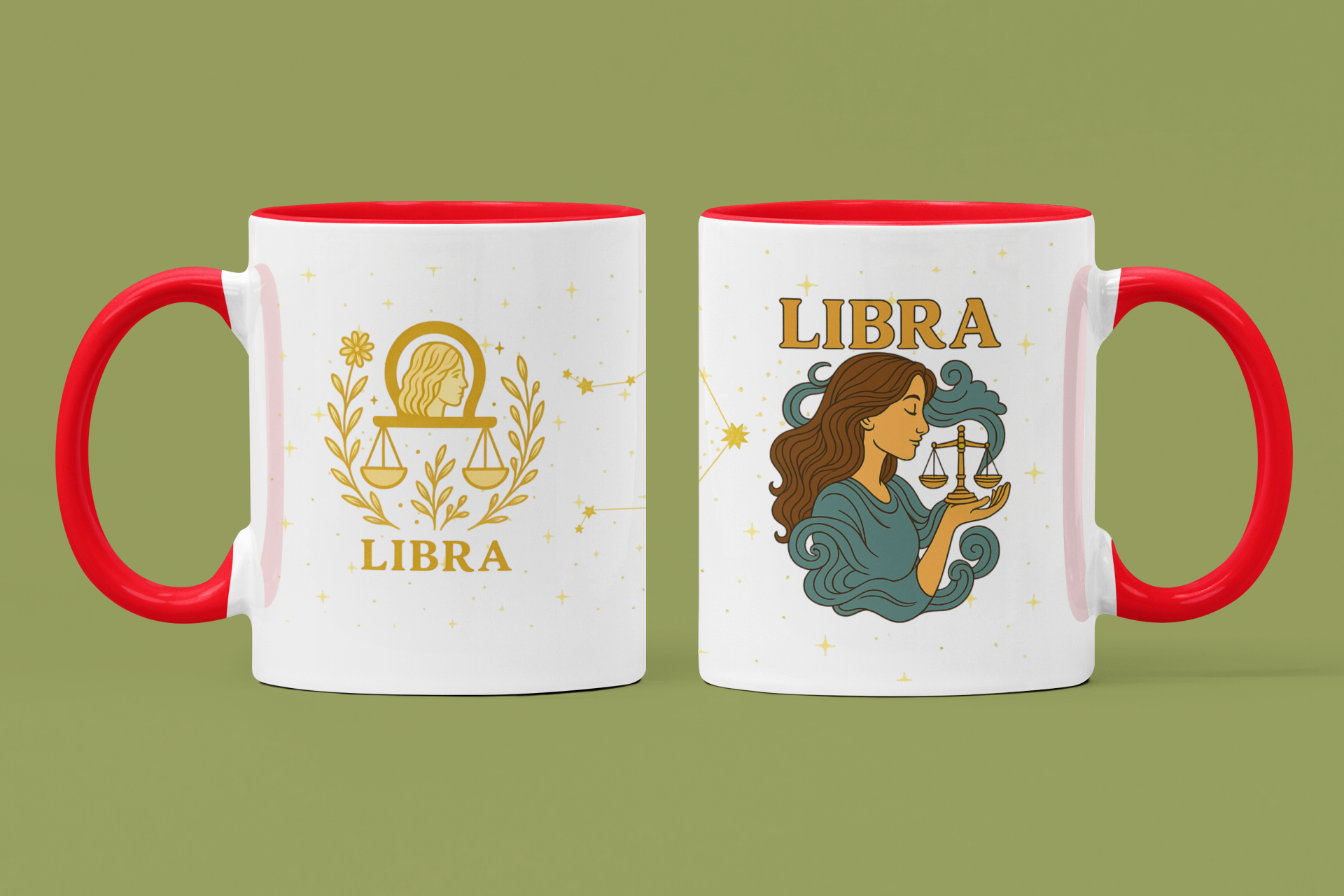 Libra Zodiac 15oz Ceramic Mug – Teal Handle Astrology Coffee Cup for Air Signs