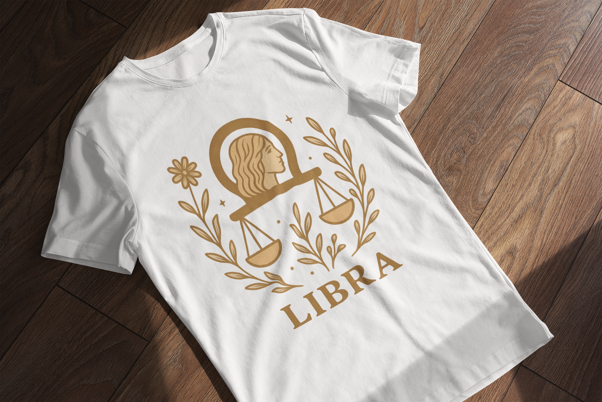 This Libra Zodiac T-Shirt features a minimalist, boho-inspired illustration in soft golden tones: a classic Libra scale, floral branches, and a serene profile framed in the Libra symbol. Clean, elegant lines and warm color make this tee perfect for anyone who loves astrology, subtle graphics, and aesthetic outfits.