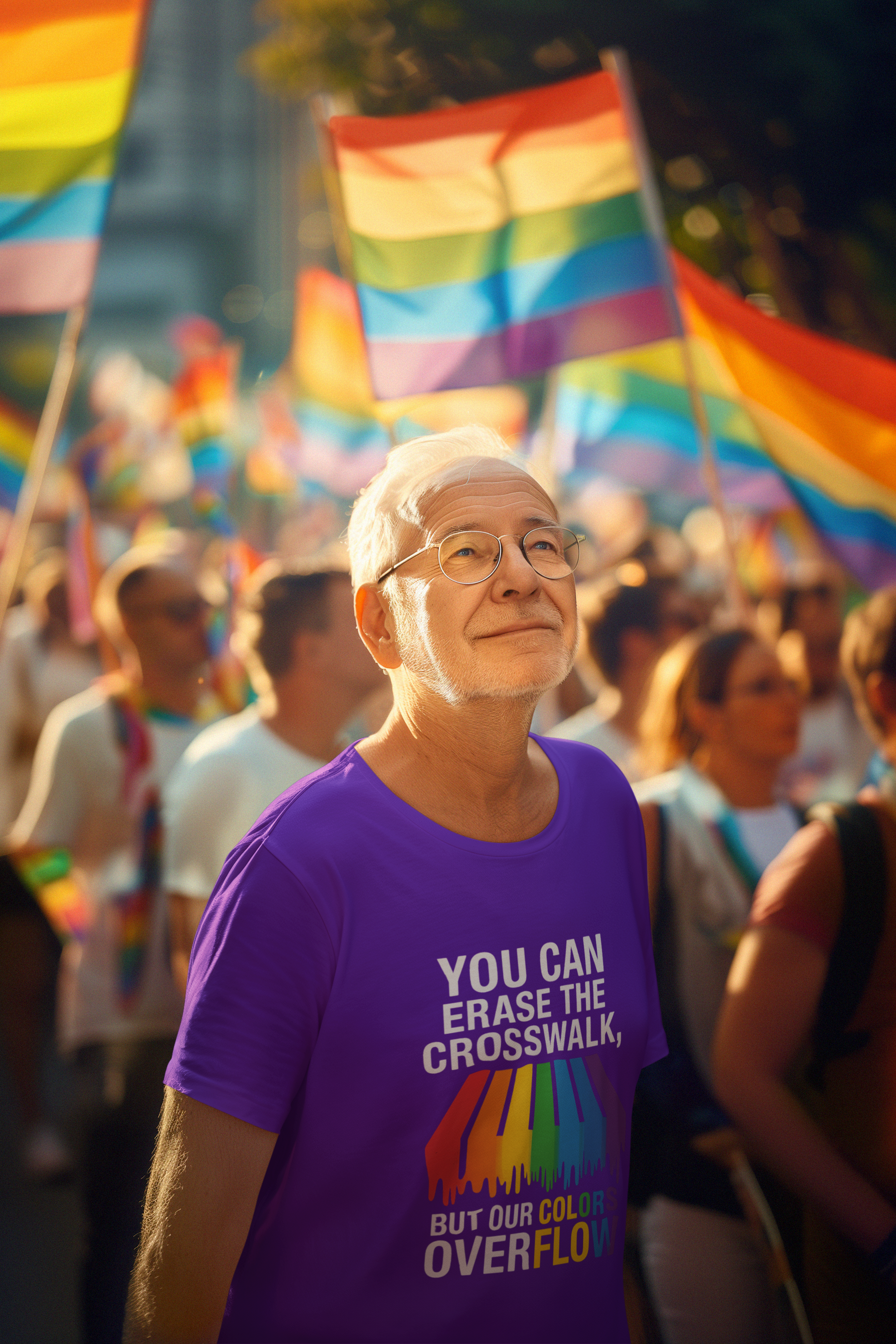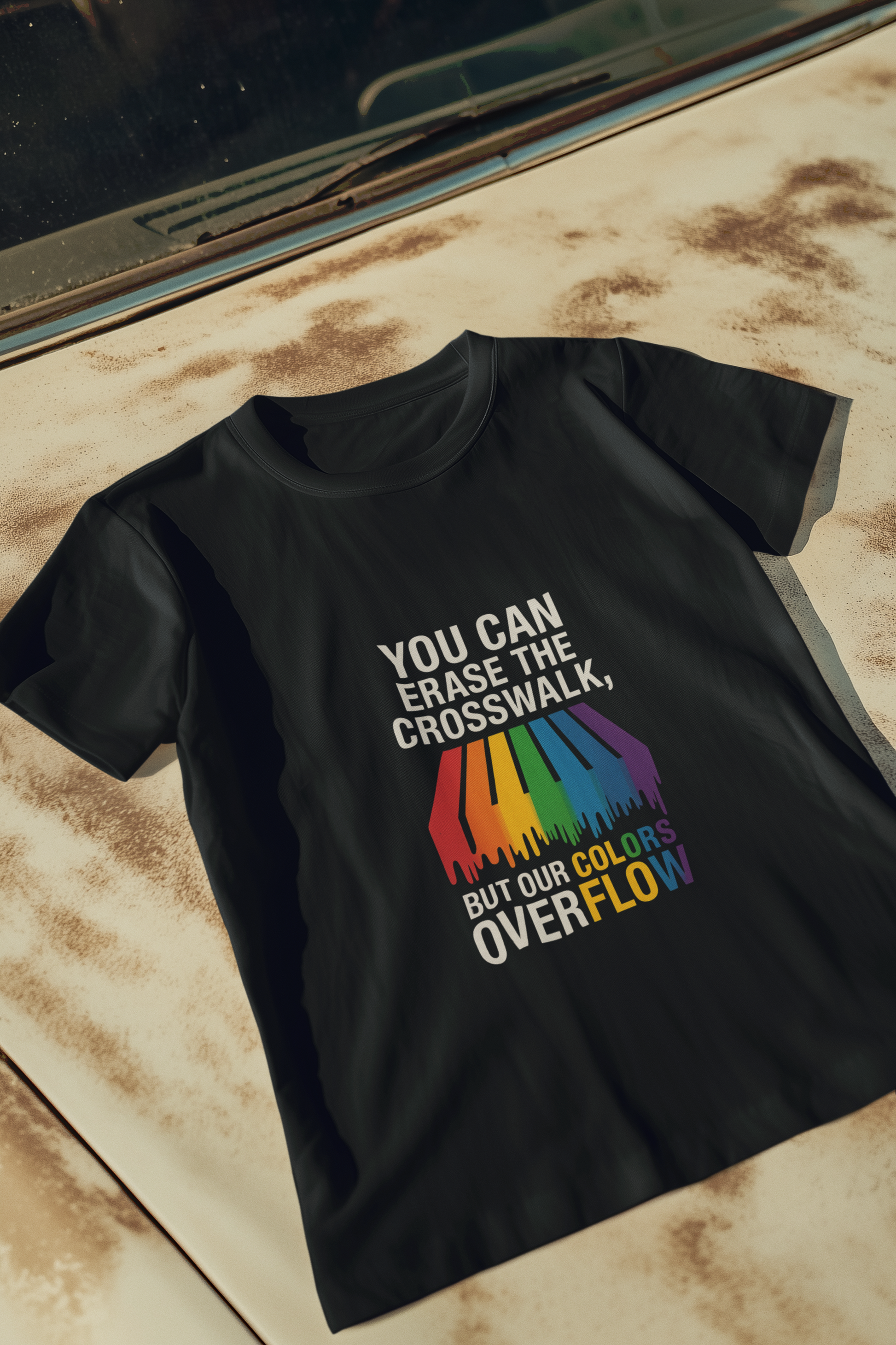 Show your pride loud and proud with this bold “You Can Erase the Crosswalk, But Our Colors Overflow” tee — a statement of love, resilience, and unity that can’t be painted over.