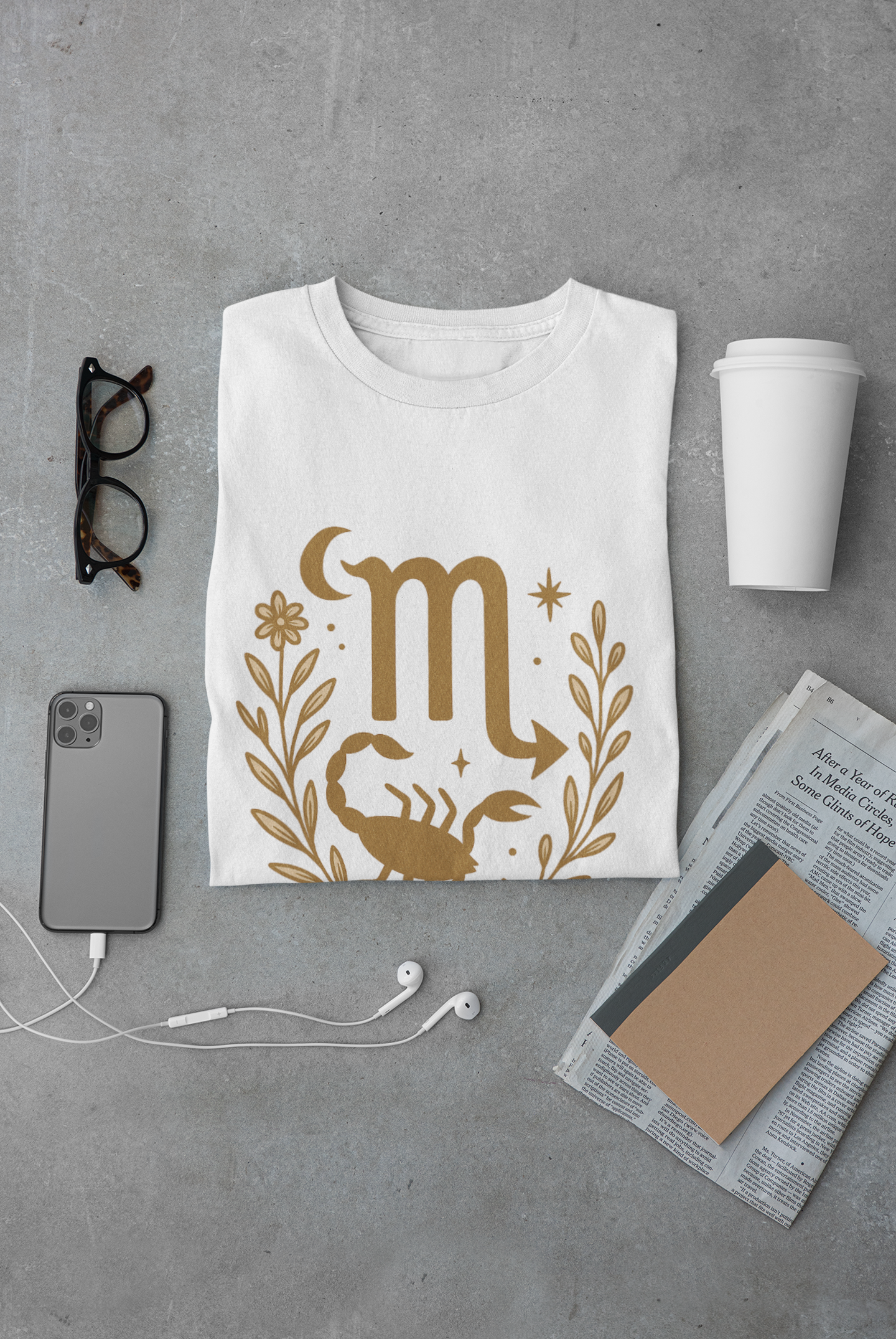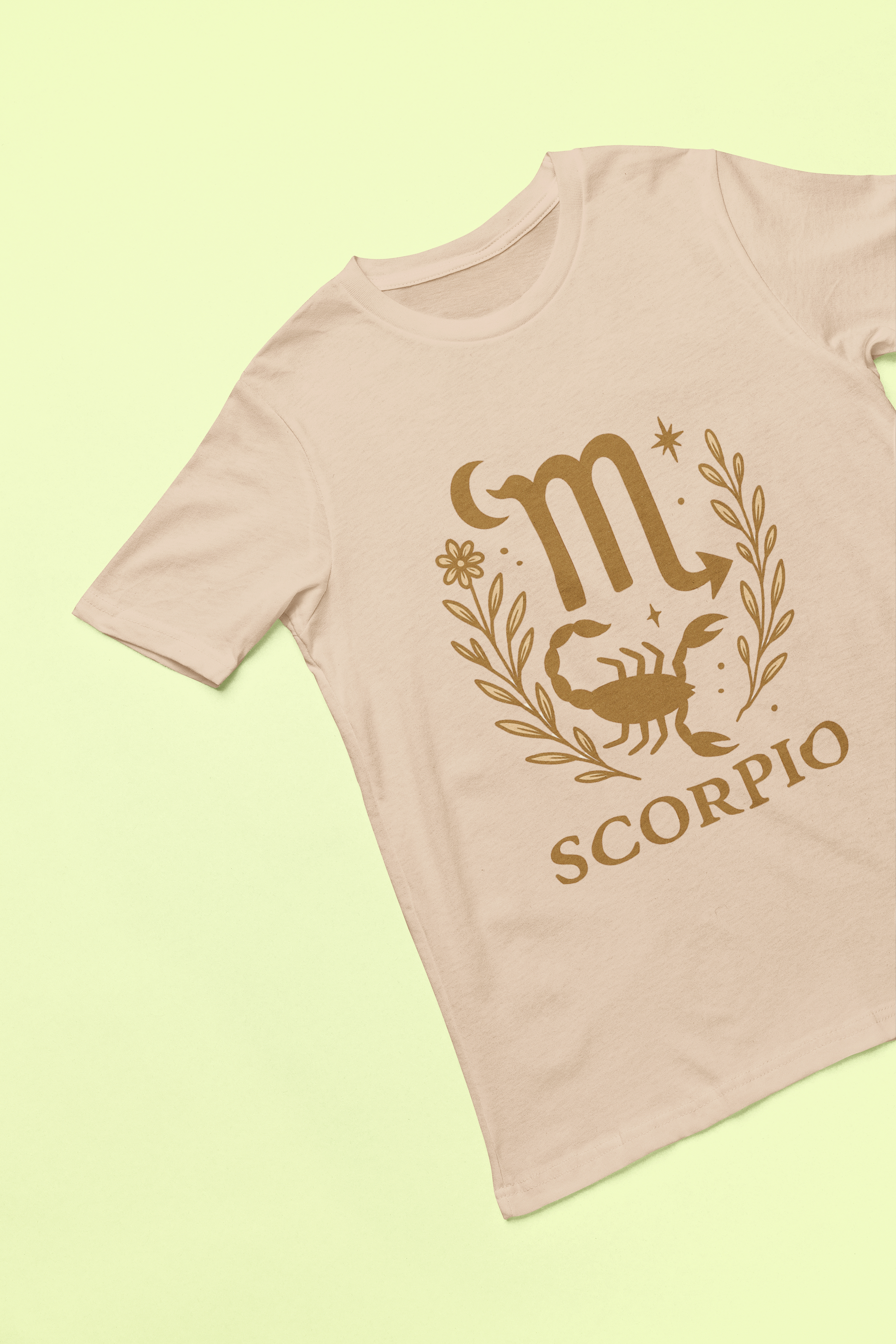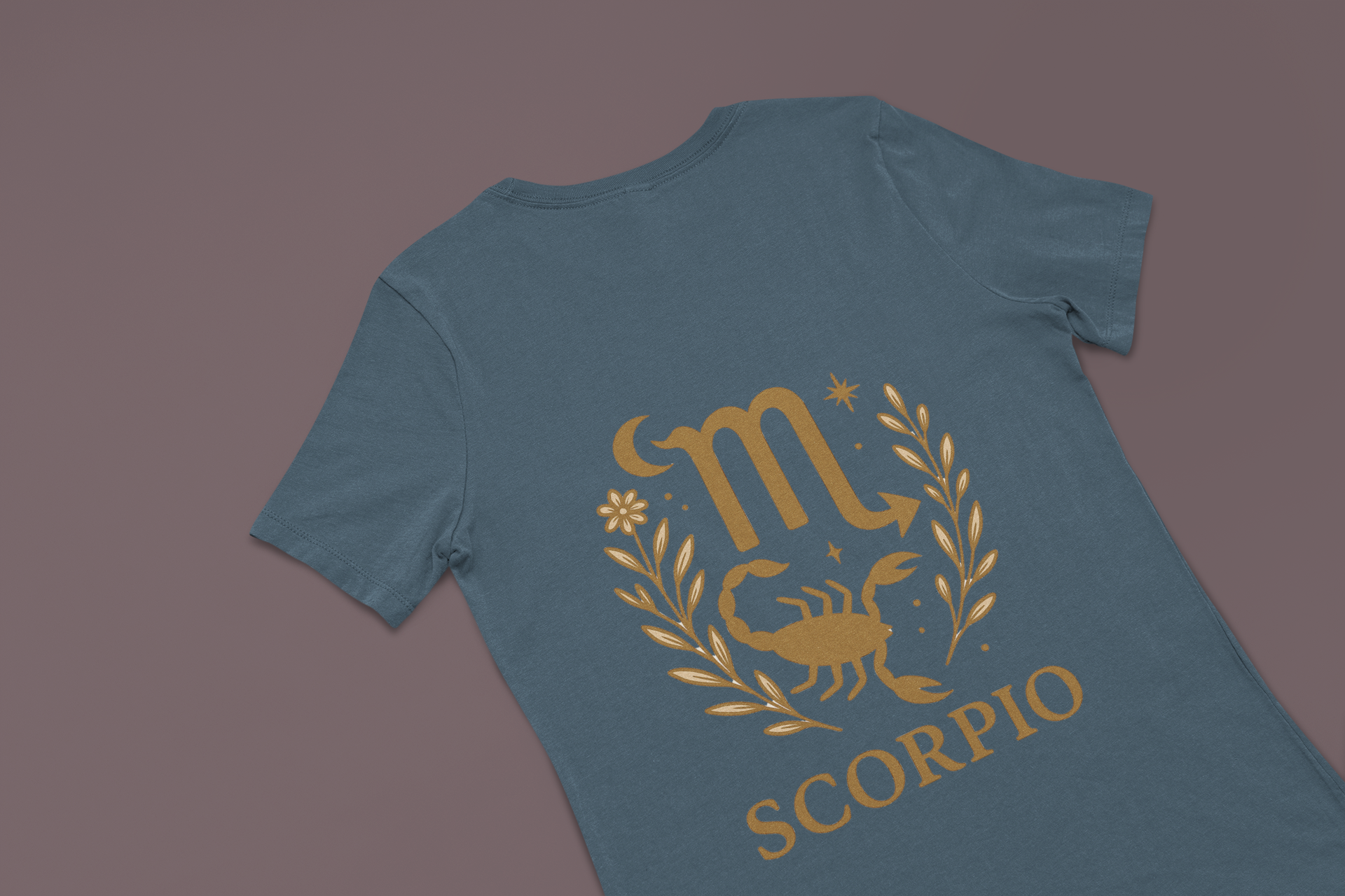 Bold, earthy, and a little mysterious – this black Scorpio tee features a vintage-inspired zodiac design in warm gold ink on a premium Gildan 64000 unisex shirt. Perfect for astrology lovers, fall fits, and November birthdays.