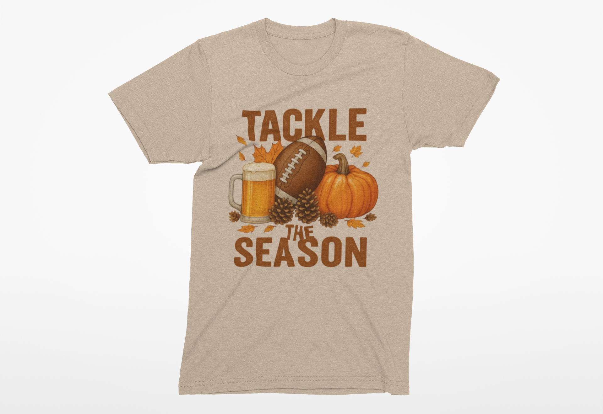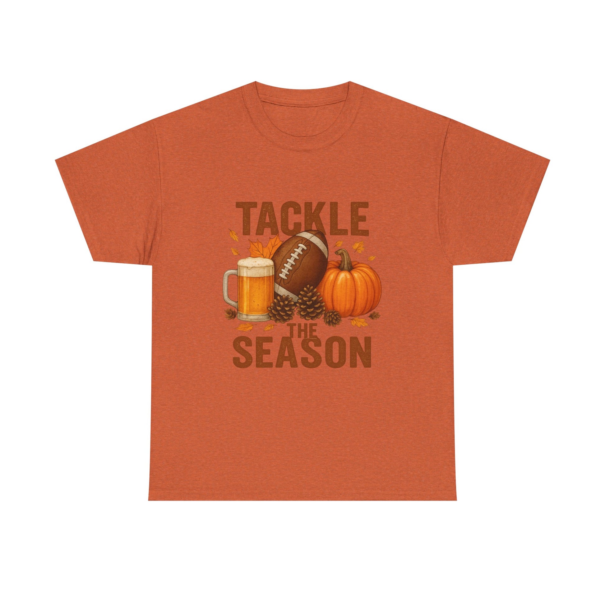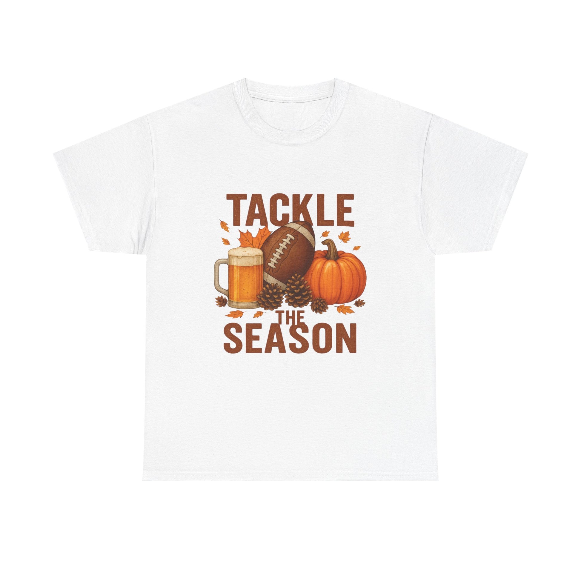 Tackle the Season Shirt | Fall Football Beer Pumpkin Tee | Gildan 5000 White | Free Shipping